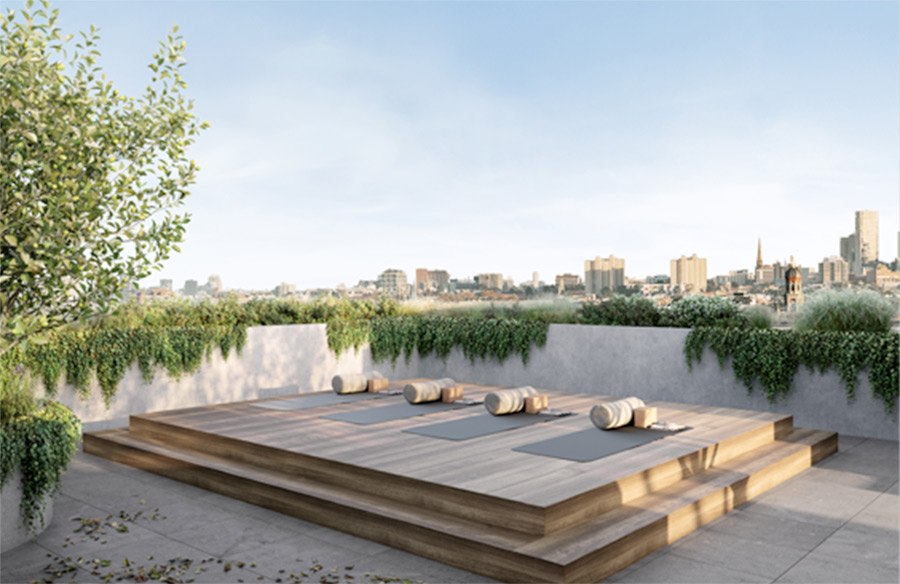 - Rooftop yoga & meditation spaces, private gardens, BBQ, playground, apiary, outdoor productivity pods, walking loops and more